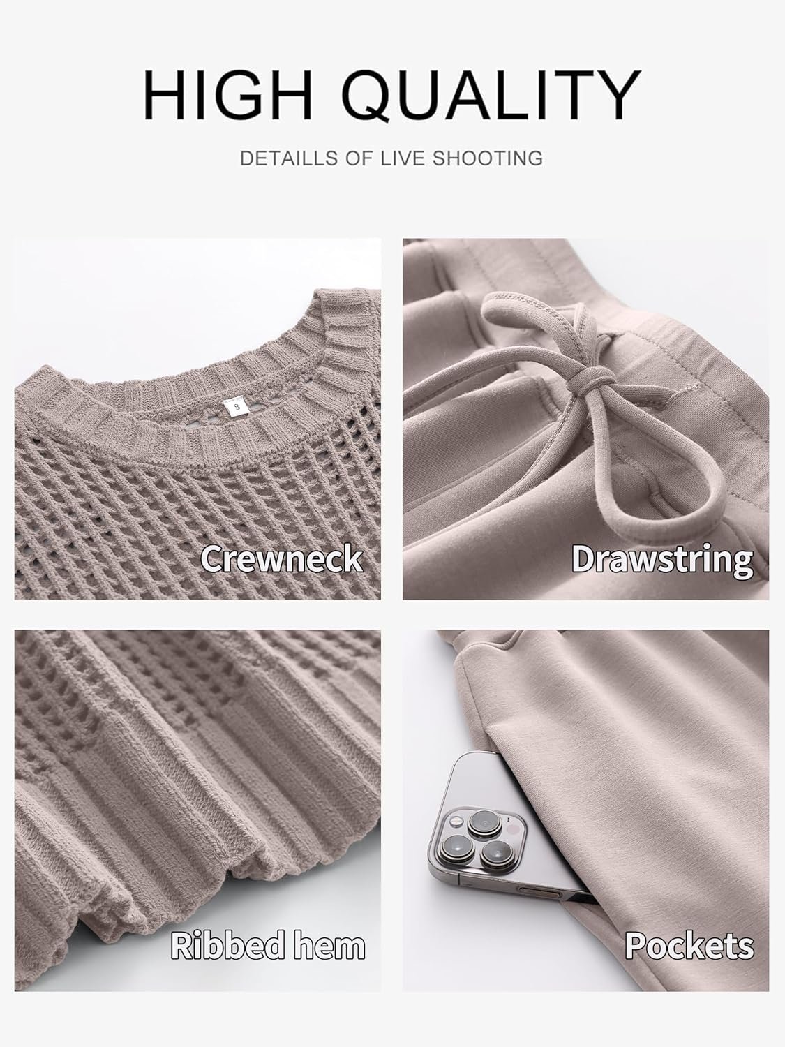 / ANRABESS Women Two Piece Outfits Crochet Sheer Knit Sweater Top Wide Leg Pants Lounge Matching Sets Sweatsuit Travel Clothes