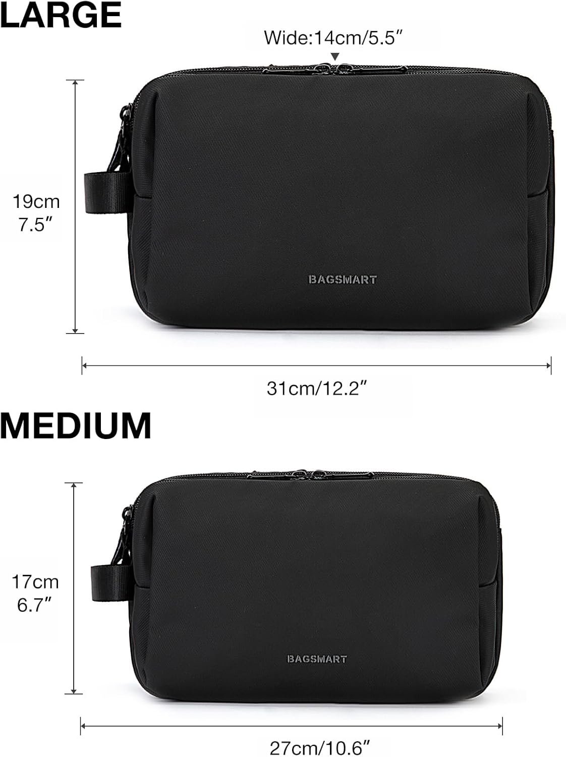 𝐋𝐚𝐫𝐠𝐞 𝐜𝐚𝐩𝐚𝐜𝐢𝐭𝐲: Mens toiletry bag medium size: 10.6”L*3.9”W*6.7”H, large size: 12.2”L*5.5”W*7.5”H. Different sizes meet the needs of various buyers, with the large size capable of holding all the toiletries for a family