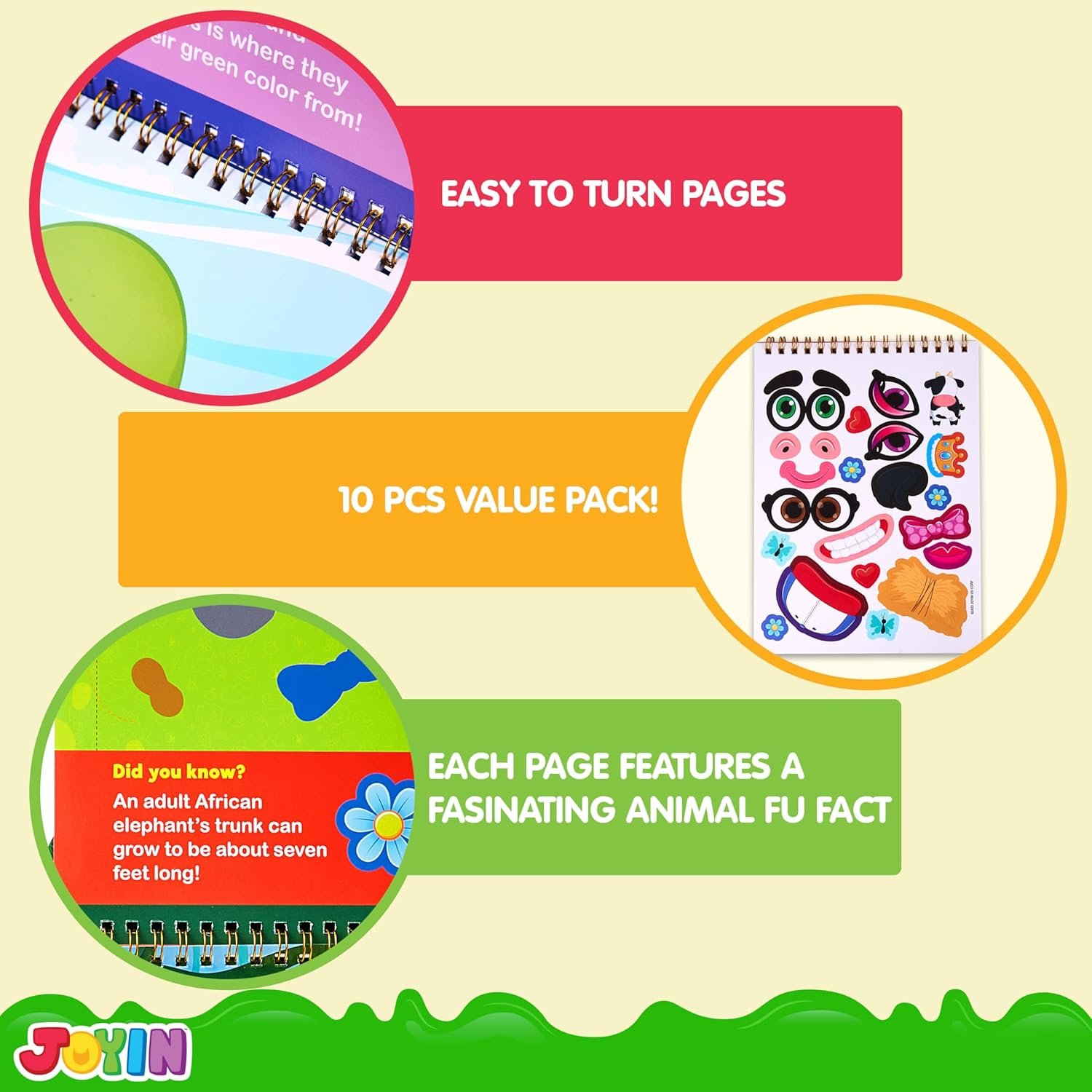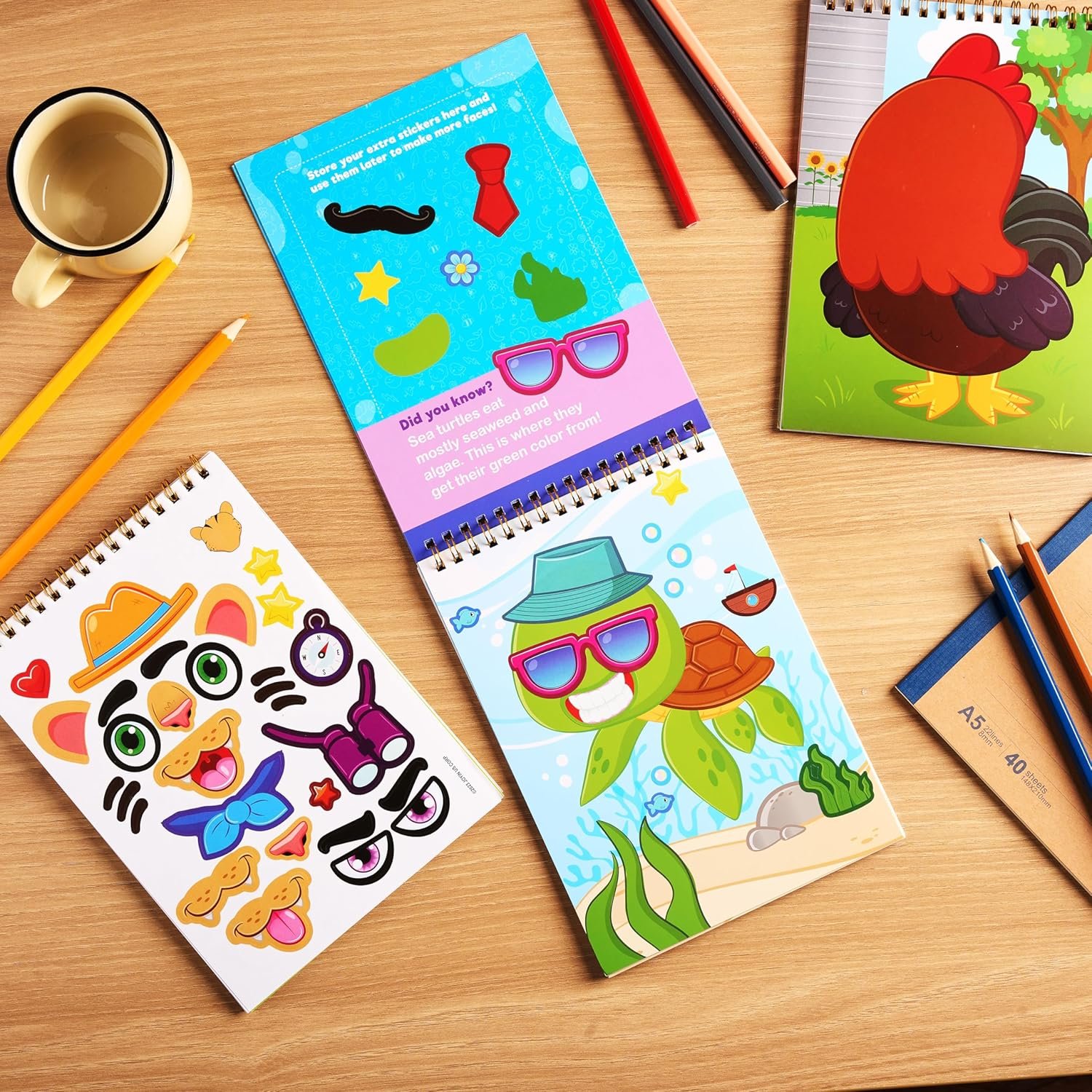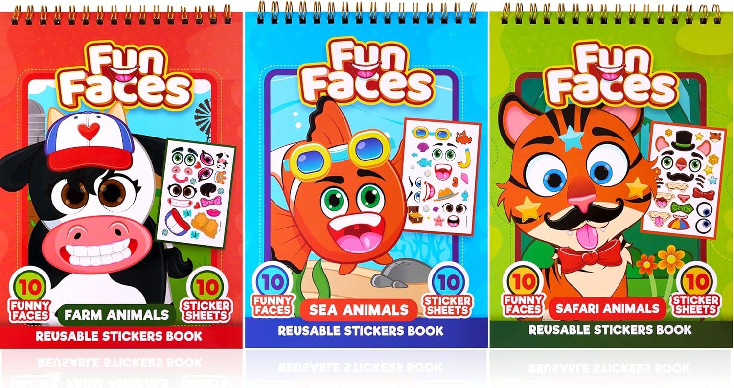 JOYIN Make-a-Face Reusable Sticker Books 3-Pack (Safari, Farm, Sea Animals) – On The Go Travel Toys Activity Pad for Kids Ages 4-8(30 Scenes)